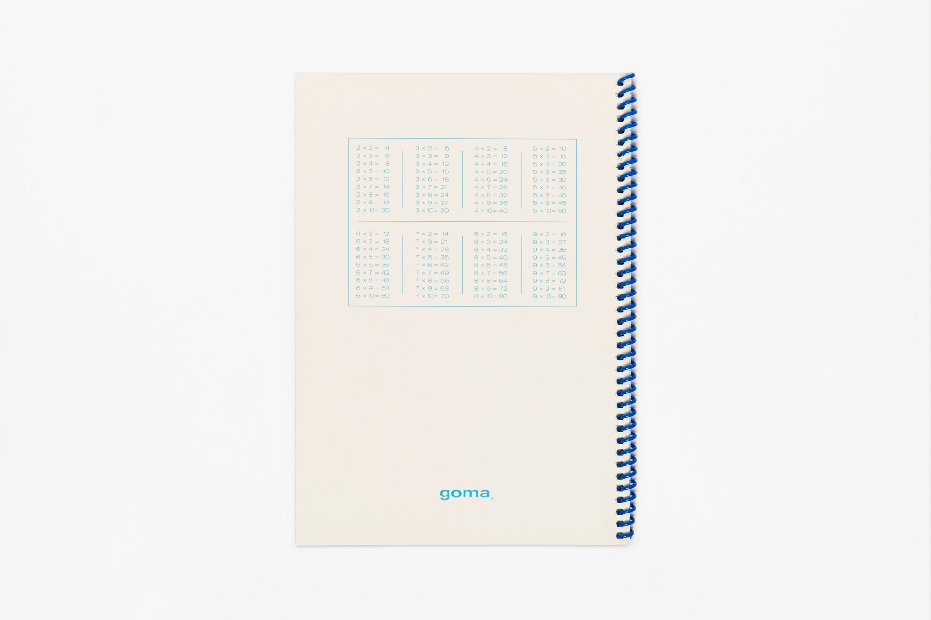 goma® composition books are coil-bound, custom-ruled graph/grid sheets and feature fountain pen-friendly paper. Intended to be filled with coloured pencils and markers, they also boast a handy multiplication table chart on the back cover for the young’uns. Sleekly laid, tasteful to the touch and printed with water-based inks. 17 × 24 cm (6,7 × 9,4 in), 50 pages of responsibly sourced paper matter. Pesticide-free. Made in Athens, Greece.
