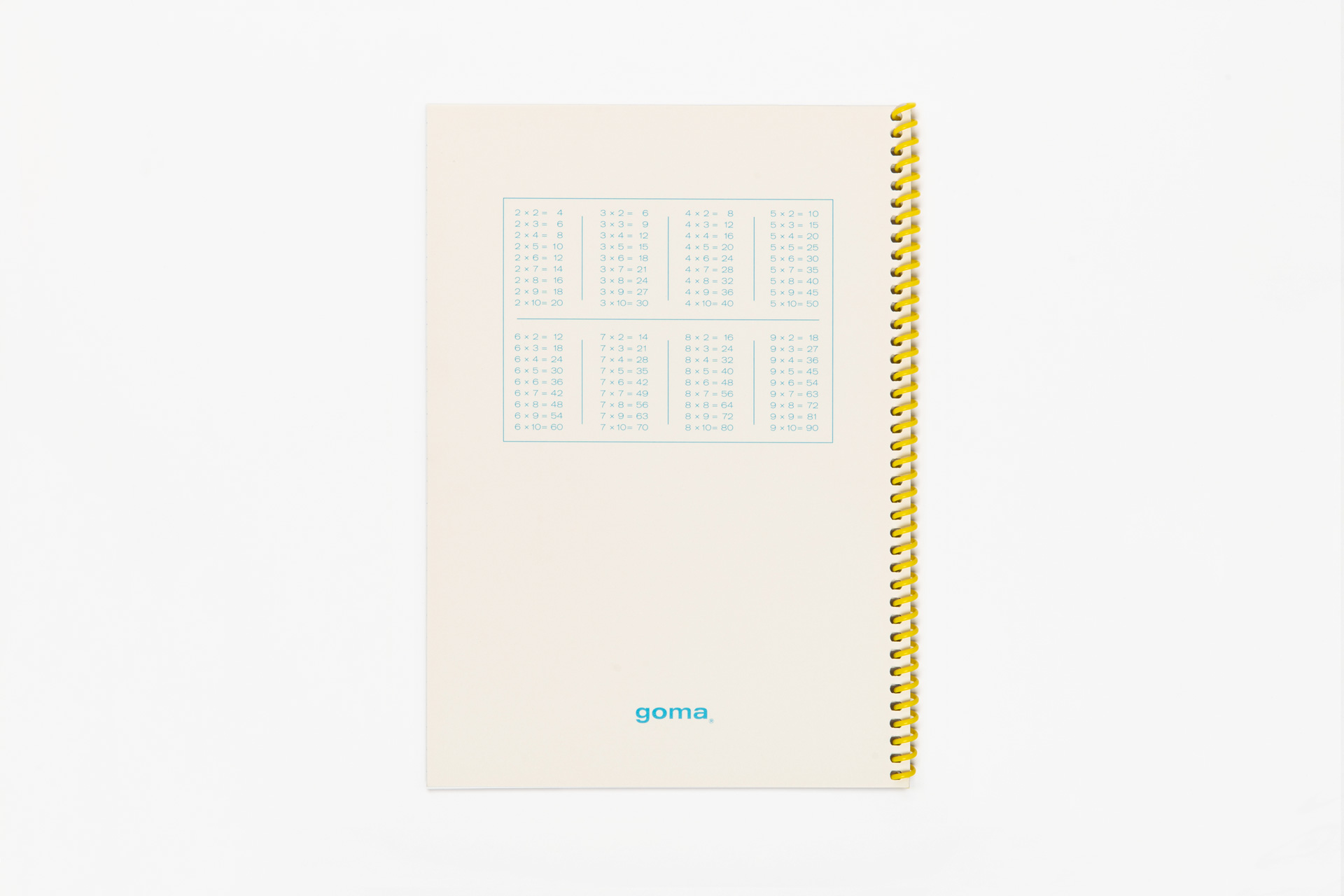 goma® composition books are coil-bound, custom-ruled graph/grid sheets and feature fountain pen-friendly paper. Intended to be filled with coloured pencils and markers, they also boast a handy multiplication table chart on the back cover for the young’uns. Sleekly laid, tasteful to the touch and printed with water-based inks. 17 × 24 cm (6,7 × 9,4 in), 50 pages of responsibly sourced paper matter. Pesticide-free. Made in Athens, Greece.