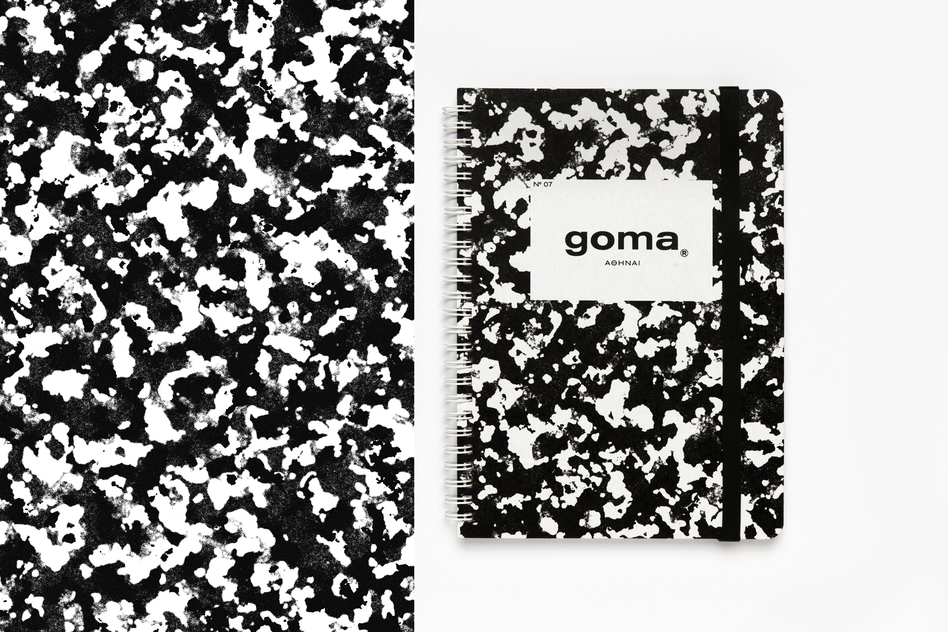 goma® In Sheep’s Clothing № 07 features screen-printed hard cover with rounded corners designed to put up with daily wear and tear. 360º flat opening with blank, fountain pen-friendly stock paper. Featuring a double pocket to store loose notes, lists of your enemies and other paper-based ephemera. Tied with an elastic natural latex band closure to keep everything nice and tidy for the travelogs. 17 × 22 cm (6,7 × 8,6 in), 140 pages of responsibly sourced paper matter. Limited edition. Pesticides free. Made in Athens, Greece.