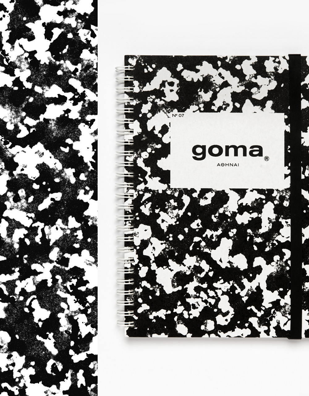 goma® In Sheep’s Clothing № 07 features screen-printed hard cover with rounded corners designed to put up with daily wear and tear. 360º flat opening with blank, fountain pen-friendly stock paper. Featuring a double pocket to store loose notes, lists of your enemies and other paper-based ephemera. Tied with an elastic natural latex band closure to keep everything nice and tidy for the travelogs. 17 × 22 cm (6,7 × 8,6 in), 140 pages of responsibly sourced paper matter. Limited edition. Pesticides free. Made in Athens, Greece.